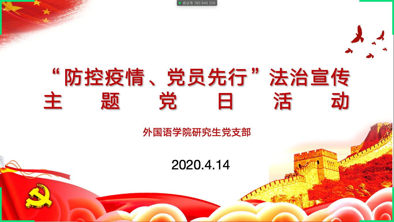 4月14日,365英国上市公司研究生党支部开展了以“防控疫情、党员先行”为主题的在线党日活动,支部全体成员参加活动,会议由支部书记籍天璐主持。