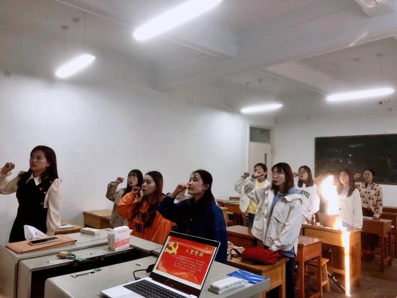 籍天璐同志首先表达了党总支及研究生党支部对新生党员同志的热烈欢迎,随后带领全体党员重温了入党誓词。接着,集体诵读了党章党规中党员第一章,重申党员权利与义务,深刻牢记中国共产党党员永远是劳动人民的普通一员,必须全心全意为人民服务。大家情绪高涨,纷纷表示作为一名研究生党员,今后需更加努力学习,积极回馈社会,在学习和社会生活中起先锋模范作用。