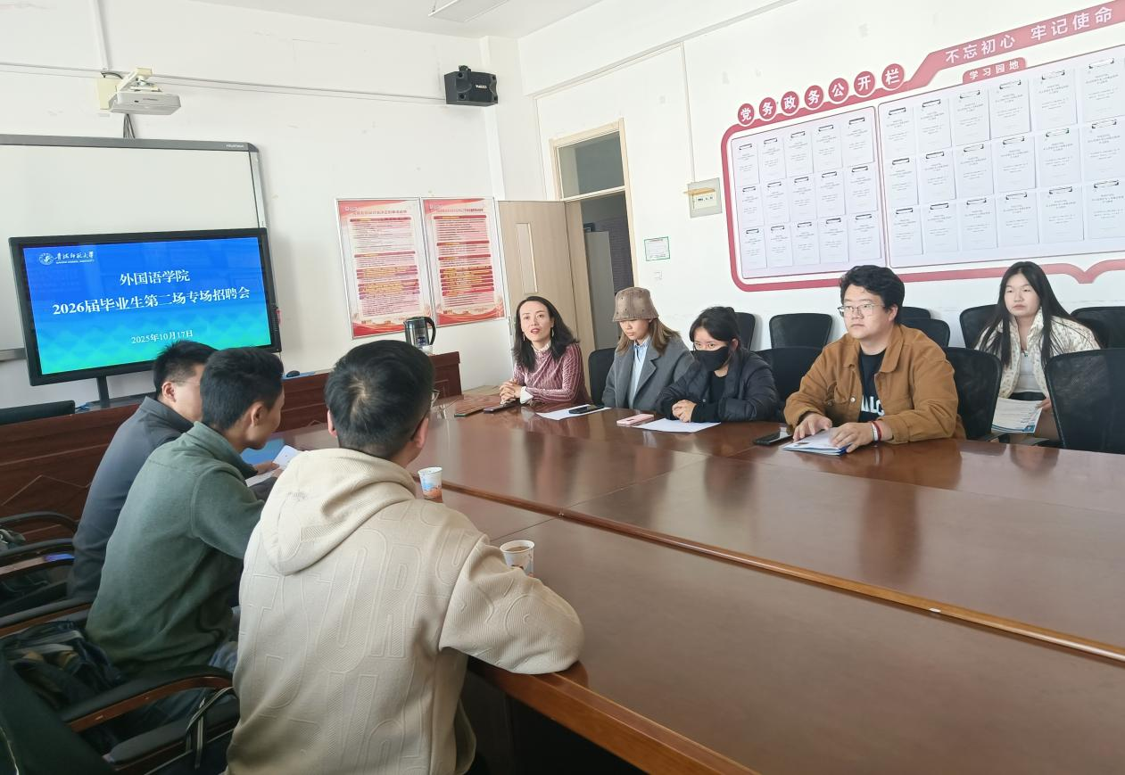为进一步拓宽毕业生就业渠道,提高员工高质量就业,10月17日下午,365英国上市公司在栋二楼408会议室举办了2026届毕业生第二场专场招聘会。此次招聘会邀请到新疆某厅保密单位前来宣讲并现场报名,会议由公司就业辅导员巩鲜妮主持,公司英语专业和翻译专业部分优秀员工积极参会。