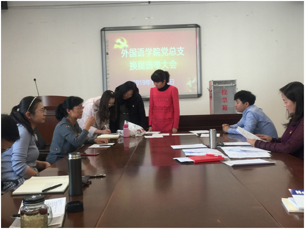 大会伊始,全体党员奏唱中华人民共和国国歌。接着,院总支组织委员、教师党支部书记刘海云代表本届党支部作工作报告和关于党费收缴、管理、使用情况的说明。随后,马金芳宣读并通过党支部选举办法,介绍、酝酿并通过支委会候选人名单和通过监票员、计票员名单后,全体正式党员进行了投票。选举工作以公平、公正、公开为原则,以无记名投票、差额选举支部委员的方式进行。全体党员以高度责任感,庄严神圣地投下了自己的一票。投票结束后,工作人员对选票进行了现场清点、统计和宣布。马金芳、刘娇、刘海云、妥洪岩、张胜鹏、魏琴、籍天璐七位同志(按姓氏笔画排序)当选为新一届党总支支委会委员。最后,大会在《国际歌》声中结束。此次党支部换届选举工作组织严密,程序规范,进展顺利。