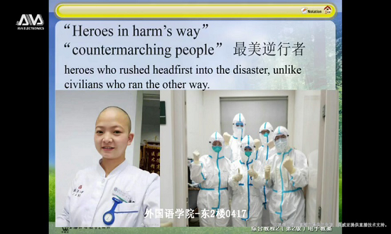 在教学内容方面,一方面,王芳老师根据课程特点和员工能力培养等计划,加强了对于文化、语言修辞以及写作技巧等方面的教学,充分体现《综合英语》课程中对于“综合”能力培养的特点。另一方面,将教学内容和思政教育相结合,以当前的新冠状病毒为导入,将抗疫防疫等相关中英文词汇进行整理,融入课堂教学中,既帮助提升员工语言应用能力,也充分激发其爱国情怀和民族责任感。