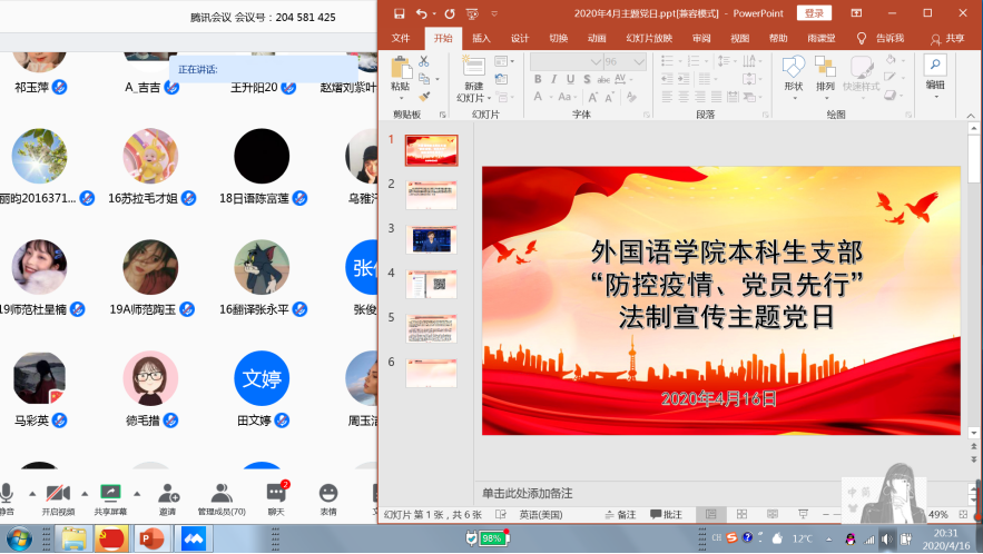 4月14日—22日,公司各级党组织开展了“防控疫情、党员先行”法治宣传主题党日活动,深入学习了习近平总书记在中央全面依法治国委员会第三次全体会议上的重要讲话精神和《中央全面依法治国委员会关于落实依法防控新型冠状病毒感染肺炎疫情切实保障人民群众生命健康安全的意见》精神,教育引导广大党员主动履行疫情防控义务和责任,不断增强“四个意识”,坚定“四个自信”,做到“两个维护”。