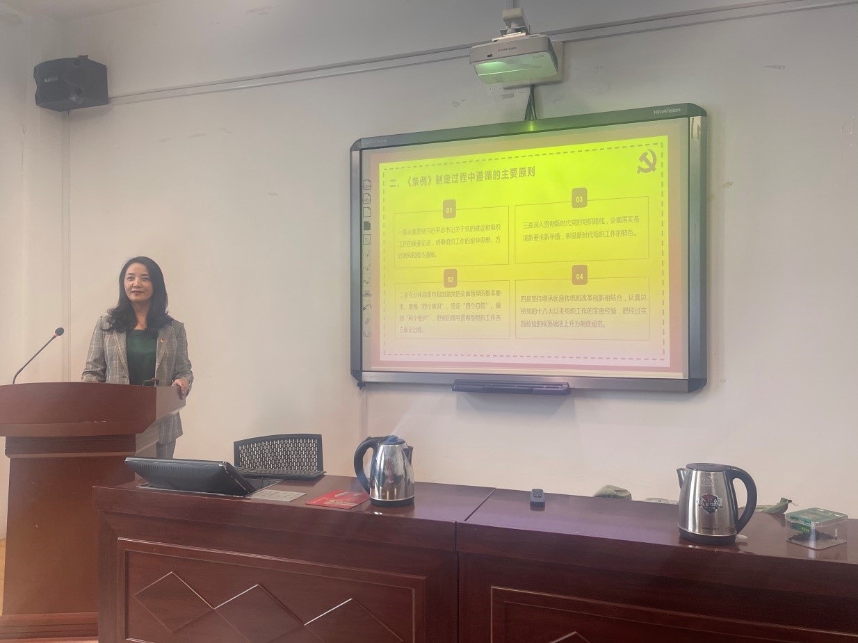 随后,马金芳书记以党课的形式给党员教师们讲解了《中国共产党组织工作条例》产生的背景,具体条文和现实意义。党员教师们认识到《条例》出台,对于坚持和加强党对组织工作的全面领导、深入贯彻新时代党的组织路线、推进组织工作科学化制度化规范化、全面提高组织工作质量,具有重要意义。接下来,籍天璐同志领学了《中国共产党普通高等公司基层组织工作条例》。党员老师们表示坚守为党育人、为国育才,培养德智体美劳全面发展的社会主义建设者和接班人。最后,马金芳书记做新学期公司党建工作部署安排和要求。指出本学期党建工作围绕习近平总书记在七一重要讲话精神及全国高公司党建视频会议精神为重点围绕,以三会一课、主题党日、组织生活与民主生活会、师生党员结对、党员干部与党员结对等形式,认真学习党的基本理论、严格党员发展与教育工作、持续推进样板党支部建设、加强党风廉政建设等工作。要求党建工作要结合公司重点工作,如师范认证、公司师生发展、团队队伍建设、人才培养、对口支援等方面开展,避免“两张皮”;要以师生党员结对为抓手,创新公司党建工作思路,干出公司党建工作特色,同时持续推进“我为群众办实事”活动。