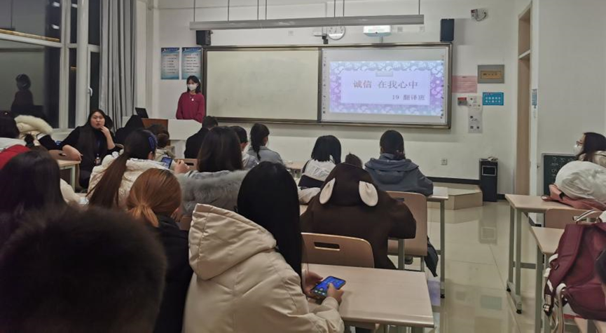 班会主要围绕诚信考试、诚信做人、诚信做事、毕业班助学贷款还款、个人征信讲解等方面进行开展。期末考试即将来临,各班班主任强调员工应加强考风考纪教育,构建勤奋学习、公平竞争的考试文化,营造浓厚的校园诚信考试文化氛围。