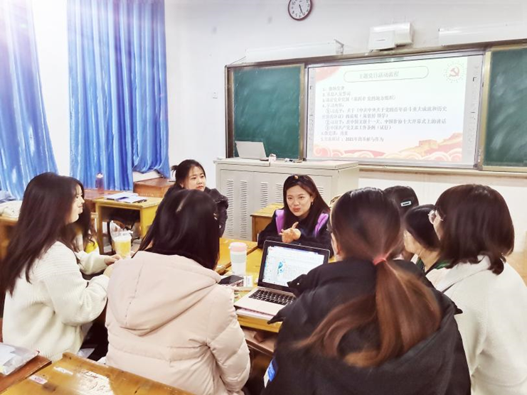 活动第二项,陈依婷同学领学《中共中央关于党的百年奋斗重大成就和历史经验的决议》,决议贯通把握历史、现在、未来,深入思考、深入研讨,聚精会神、集思广益。审议通过这个决议,是这次全会的主要任务。随后籍天璐同志领学习近平在中国文联十一大、中国作协十大开幕会上的讲话以及《中国共产党支部工作条例(试行)》。大家充分了解一百年来,党领导文艺战线不断探索、实践,走出了一条以马克思主义为指导、符合中国国情和文化传统、高扬人民性的文艺发展道路,为我国文艺繁荣发展指明了前进方向。接着,肖蓝同学作了微党课。党课讲述了全会重点研究全面总结的党的百年奋斗重大成就和历史经验问题。勿忘昨天的苦难辉煌,无愧今天的使命担当,不负明天的伟大梦想,以史为鉴、开创未来,埋头苦干、勇毅前行,为实现第二个百年奋斗目标、实现中华民族伟大复兴的中国梦而不懈奋斗。