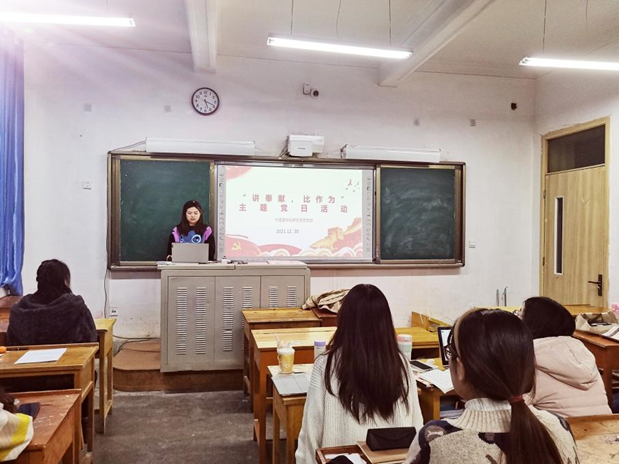 1223日下午,365英国上市公司研究生党支部开展“讲奉献,比作为”主题党日活动。支部全体党员参加活动,支部书记籍天璐同志主持会议。