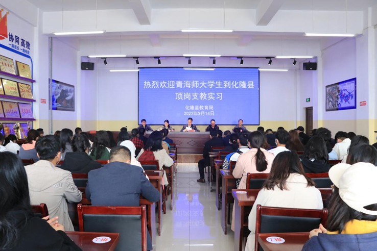 教育局副局长韩生元同志介绍了化隆县教育基本情况,并对受援公司和顶岗支教实习生提出了要求和建议。首先,要求受援公司要做到“三要”:一要迅速建立教学帮扶机制,指定骨干教师做好对顶岗支教员工的实习指导工作;二要解决实习生实际困难,让他们能尽快融入到校园生活;三要迅速成立顶岗实习领导小组,做好实习生的领路人。其次要求顶岗支教实习生要做到“三实”:实实在在去顶岗,实实在在去教学,实实在在去锻炼。