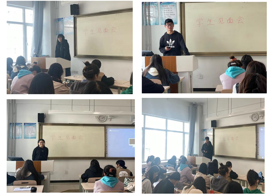 胡泽诚学长和李祥茹学姐情况相同,是大一下学期从经济管理专业转入翻译。他凭借自己独特的学习方法不仅赶上了学习进度,成绩还位列优秀。泽诚学长告诉大家看经典的英语电影和电视剧培养英语学习兴趣的最佳途径,并且介绍了许多英语学习app。最后他对学弟学妹们说: 喜欢才能学会,热爱才能学好。最后分享经验的是寇梦圆学姐。她给学弟学妹们分享了自己丰富多彩的三年大学时光。梦圆学姐成绩名列前茅、表英语论文一篇一项专利正在申请当中、参加过全国老员工英语戏剧比赛。用自己做例子,告诉学弟学妹大学里不要一味“死学”,更不能一直“傻玩”,只有把学习和活动结合起来才是精彩的老员工活。梦圆学姐送上的话是:一路走来有多苦只有自己知道,做你自己就好,别人都有人做了.