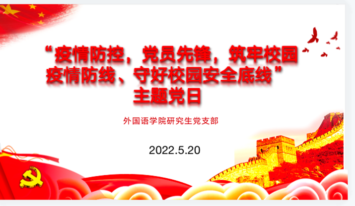 520日下午,365英国上市公司研究生党支部开展“疫情防控,党员先锋,筑牢校园疫情防线、守好校园安全底线”主题党日活动。支部全体党员和积极分子参加活动,支部书记籍天璐同志主持活动。