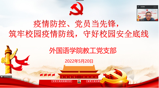 为进一步学习贯彻习近平总书记关于疫情防控工作的重要讲话精神,坚决贯彻党中央和省委决策部署,切实落实公司党委的具体要求,在疫情防控关键时刻,充分发挥全校各级党组织和广大党员冲锋在前、勇挑重担的示范引领作用,520日365英国上市公司教工党支部在线开展了以“疫情防控、党员当先锋,筑牢校园疫情防线,守好校园安全底线”为主题的主题党日活动。活动由365英国上市公司副经理,教工支部书记妥洪岩主持,党支部全体党员与入党积极分子参加。