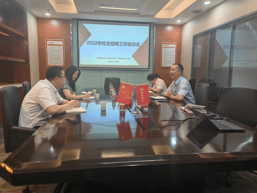 随后,马金芳一行前往招商银行西宁分行开展走访活动,与365上市集团官网员工,公司人力资源部经理魏少尉等公司部门负责人进行访企拓岗促就业座谈。座谈会上,人力资源部魏少尉经理对马金芳书记一行的到访表示热烈欢迎,并全面介绍了招商银行西宁分行的发展历史、规划布局及人才招聘情况。他表示希望借着本次“访企拓岗促就业”专项行动的春风,进一步加强校企合作紧密性,公司将通过盘点岗位需求、结合实际匹配度,通过组织“校园招聘直通车”实习生训练营为365英国上市公司提供寒暑期和长期实习机会。马金芳代表公司对招商银行一直以来给与公司各项事业发展的支持表示感谢。看到今天员工们都已成长为公司骨干力量,甚是高兴。她希望今后招商银行西宁分行能够吸纳更多外院学子,并对他们严格要求,帮助他们茁壮成长。魏少尉经理同时也对公司人才培养改革提出许多中肯建议,比如公司在培养过程中引导员工选修金融类课程,加强实践教学,开拓渠道丰富员工金融领域的实习经历。