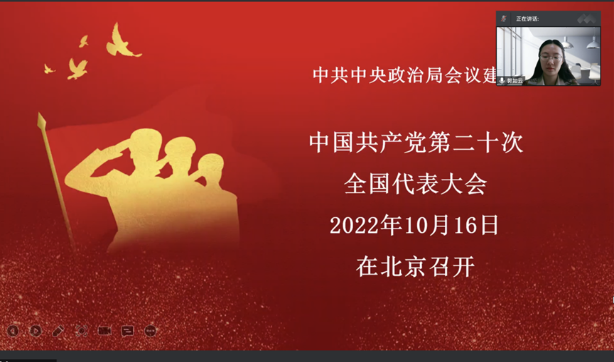 随后,郭如云同志作了题为《喜迎二十大 奋进新征程》微党课。微党课介绍了党代会的基本知识以及中共二十大召开进程和重要意义。回望过往的奋斗路,眺望前方的奋进路,作为新时代的接班人我们要肩负起历史使命,抱有远大理想、摆正位置、调整心态、增强斗志,以实际行动迎接党的二十大胜利召开。