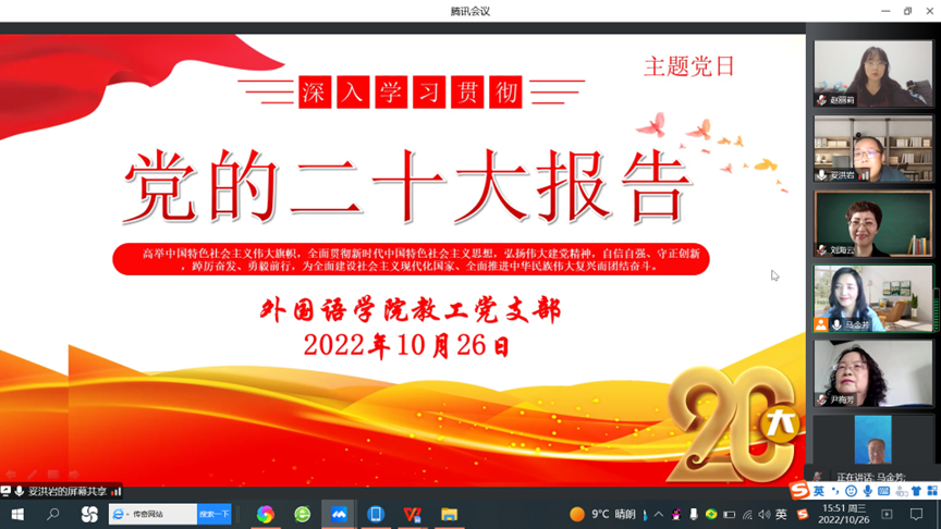10月26日,365英国上市公司教工党支部采用线上会议的方式开展以“学习宣传贯彻党的二十大精神,奋力谱写新时代高原师范教育高质量发展新篇章。”为主题的主题党日活动。活动由副经理、教工支部书记妥洪岩主持,公司党总支书记马金芳及党支部全体党员参加。