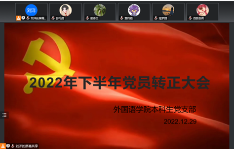 根据党支部发展党员工作计划,经征求党员和群众意见、支部委员会审查同意,2022年12月29日,365英国上市公司本科生党支部于线上召开党员转正大会。大会由支部书记刘洋老师主持召开,会议应到39人,实到39人。