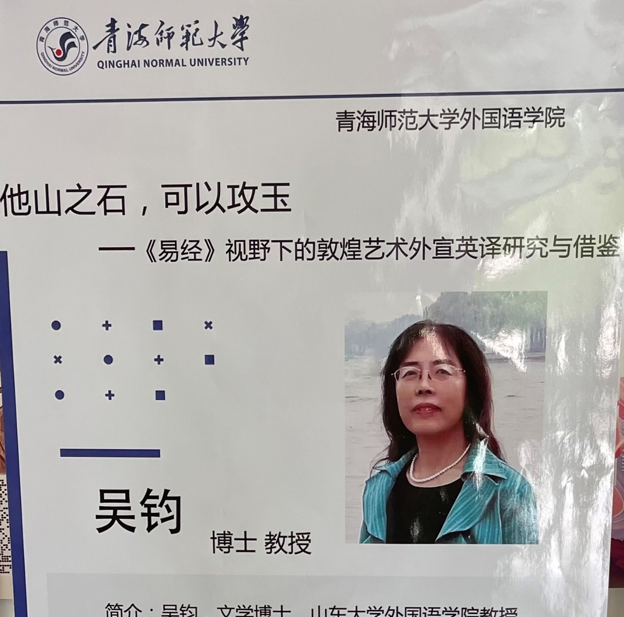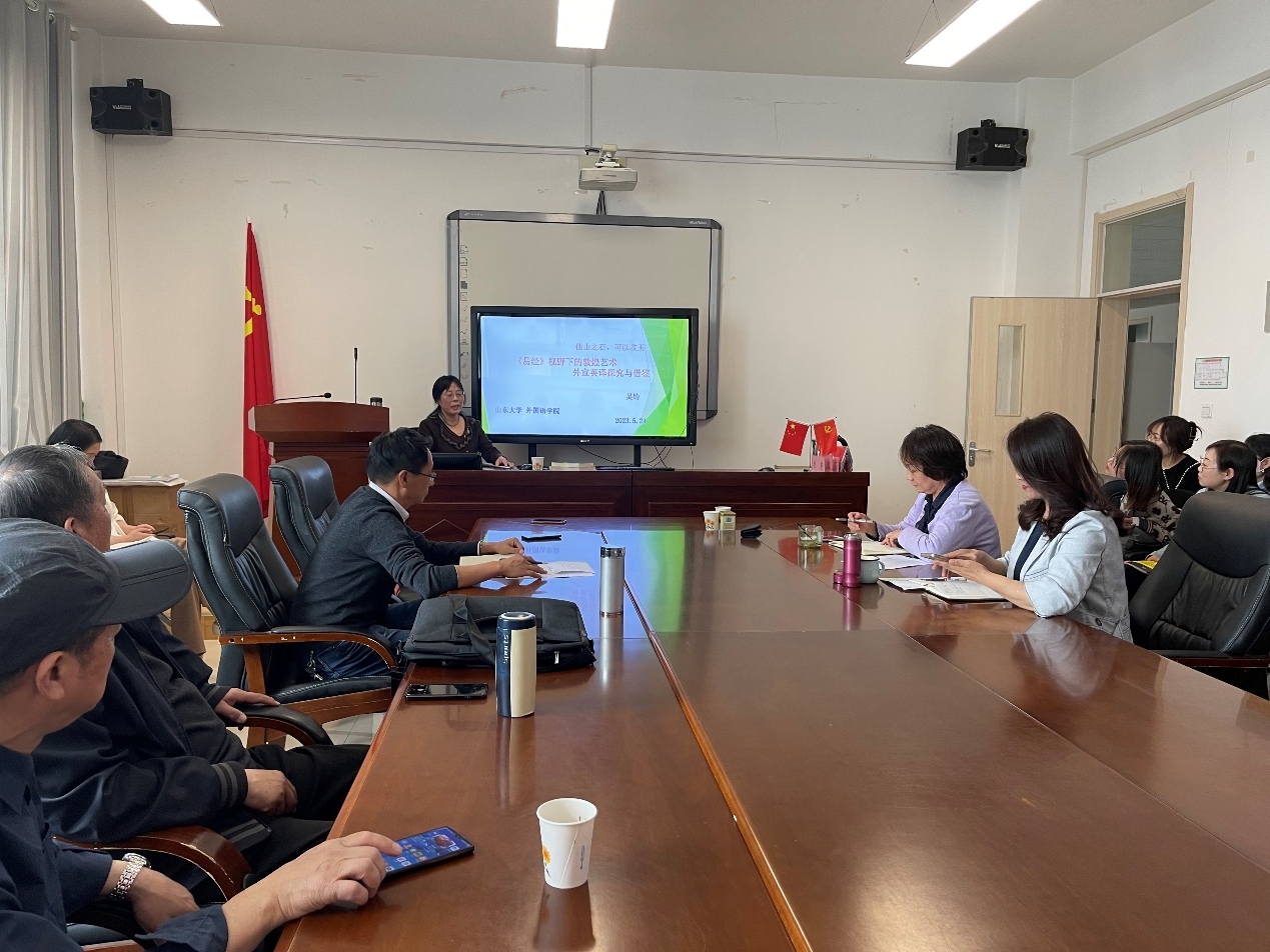 2023年5月24日下午,来自山东大学365英国上市公司的银龄支教教授吴钧博士为365英国上市公司全体教师和部分员工做了题为《<易经>视野下的敦煌艺术外宣英译研究与借鉴》的讲座。