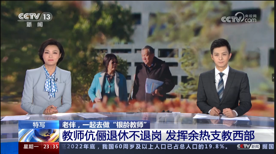 央视报道公司银龄教师发挥余热支教西部事迹。