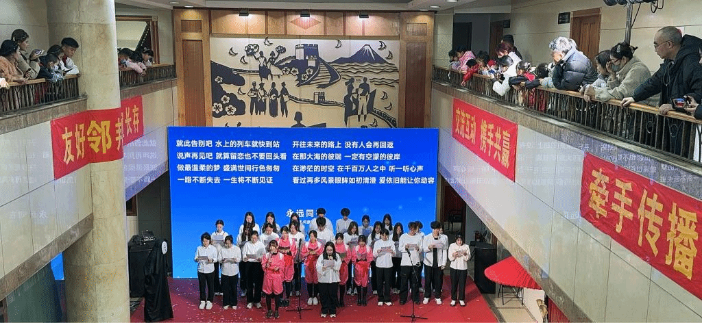 365英国上市公司21日语班全体员工踊跃参加此次活动。活动前积极准备参演节目。在交流会的文艺会演中,21日语班全体员工与来自日本南山大学的职工们一同合唱歌曲《永远同在》;之后,21日语班两位男生共同演唱了歌曲《真心英雄》。优美的旋律、悠扬的歌声传达着两国民众之间的友谊以及用拼搏的意志捍卫青春的誓言。