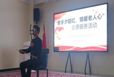 文艺表演环节,节目精彩纷呈。舞蹈《青春向太阳》活力四射,音乐公司的学子身着绚丽服饰,化身灵动舞者,用灵动的舞姿展现出青春的朝气与活力,赢得了老人们的阵阵掌声;红色歌曲二胡串烧,悠扬的二胡声在房间里回荡,勾起了老人们对往昔岁月的回忆;牟祺同学带来的歌曲《如愿》,用深情的歌声表达了对美好生活的向往,让老人们沉浸其中;何学娟演唱的《给姥姥的歌》,温情脉脉,唱出了对长辈的敬爱与关怀;何振麒带来的《再见大别山》以及王政演唱的《祖国,慈祥的母亲》,更是将现场气氛推向了高潮,老人们的脸上洋溢着幸福的笑容,不少人还跟着节奏轻轻哼唱。