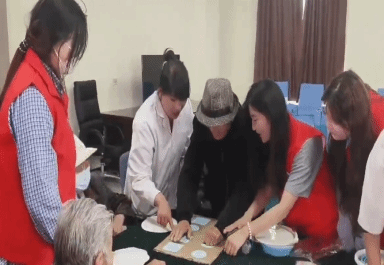 手工制作环节同样趣味十足。志愿者们带领老人们做“左方右圆”“弹跳乒乓球”等热身游戏后,一起制作了漆扇和扭扭棒。志愿者们详细讲解漆扇的历史文化、制作工艺,并耐心指导爷爷奶奶调配颜料、绘制图案。爷爷奶奶们充分发挥想象力,将山水风景等元素融入扇面,一把把独具个性的漆扇在大家手中诞生。扭扭棒制作中老人们与志愿者们相互交流创作心得,分享手工制作的乐趣,志愿者们全程热情服务,耐心解答疑问,展现出良好的精神风貌。