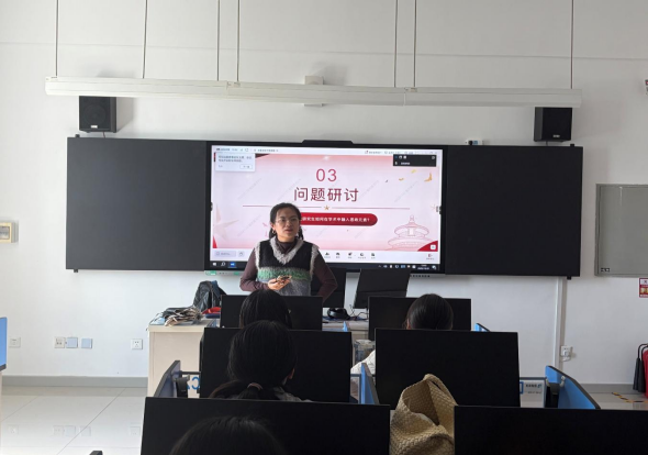首先,支部书记籍天璐简要梳理教育部部长党课核心内容,重点强调习近平总书记关于教育的重要论述与全国教育大会精神中,涉及高等教育、人才培养的关键要点,明确研讨方向。