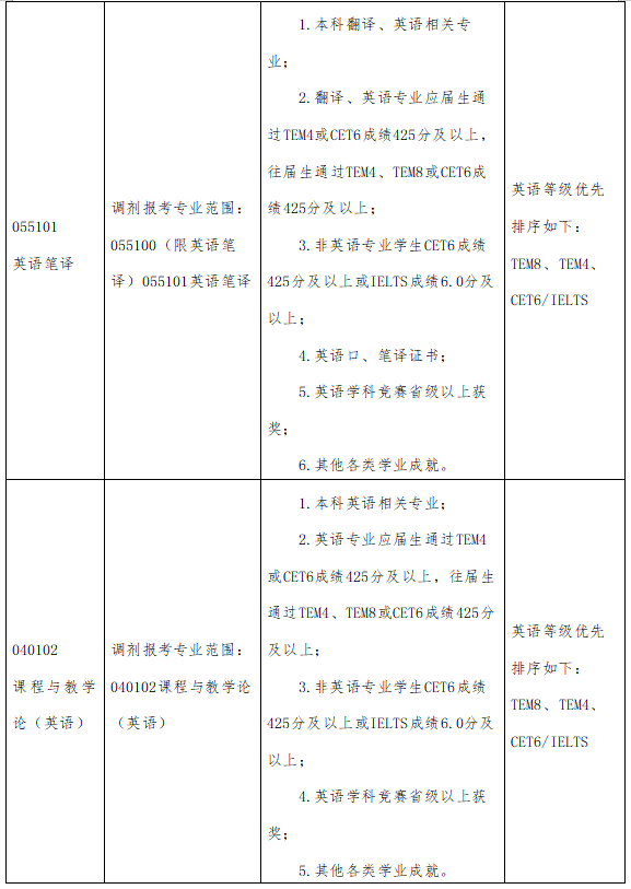 4.报考“退役老员工士兵计划”的考生,申请调剂到普通计划,其初试成绩须达到相关学科专业全国初试成绩B类地区基本要求。符合条件的,可按规定享受退役老员工士兵初试加分政策。