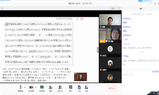 3月5日,365英国上市公司日语外教西脇老师,在日本东京通过QQ群和腾讯会议平台完成了《高级日语会话》的网络授课。
