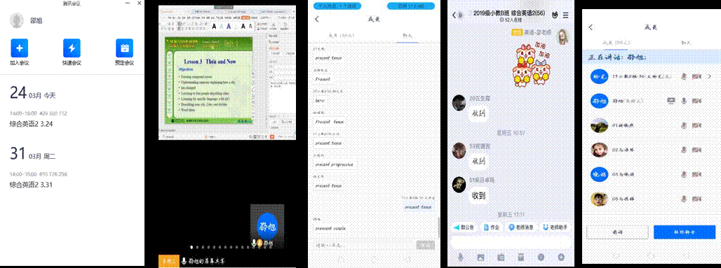 面对巨大的压力,我首先考虑课程特点,在线上进行了雨课堂、云班课、腾讯会议、QQ群课堂等多个平台的线上培训,并比较其功能、分析利弊、反复尝试、充分演练,最终确定使用雨课堂+腾讯会议+QQ家校群为主要的授课模式。与此同时,通过中国大学慕课网、网易精品课等多个网站和平台下载和整理了相关教学资源,为新学期开学做了充分准备。