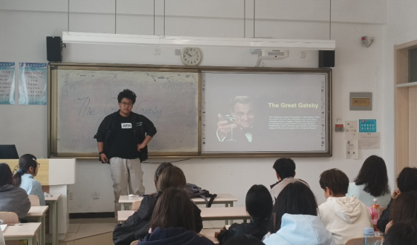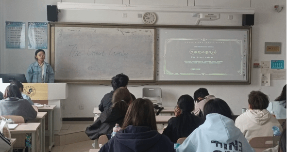 汇报组从主题探讨、内容概述、个人感悟三方面进行了分享。同学们从书中找出盖茨比为黛西付出的行动如买豪宅、办派对分析他的台词她的声音充满了金钱,思考他追求的是爱情还是理想中的自己