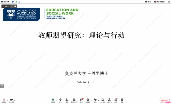 近日,公司邀请新西兰奥克兰大学Woolf Fisher 研究中心王胜男博士以线上形式开展了题为“教师期望研究:理论与行动”的讲座,公司“教师期望干预研究”工作坊的教师参加讲座。