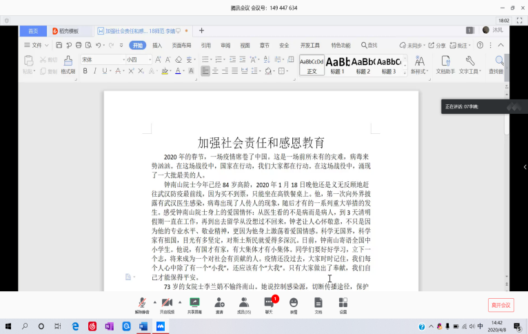 各团支书带头组织全体员工通过观看新闻报道、阅读报纸资料、列举典型案例等形式了解了疫情期间需要遵守的法制规则,教育引导员工坚定信心,集思广益,积极行动,正面发声。同时教育员工们深刻认识以钟南山、李兰娟为代表的的广大医护人员临危受命、迎难而上、负重逆行的高尚品格和勇气担当,进一步增强责任感使命感。学习中,各班同学针对此次活动主题积极查找资料,并针对加强法制和规则教育、加强社会责任和感恩教育分别作了微课讲授。