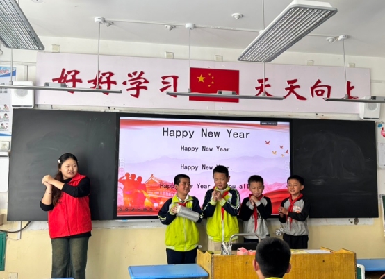 3名大二英语专业志愿者带领11名小学三至六年级员工开展了60分钟的英文歌曲《Happy New Year 》志愿活动。员工们熟练掌握了歌曲演唱,对歌词中的生词和语法有了较好的理解和运用。通过活动,员工的英语听力、口语和词汇量都有显著提升,对新年文化也有了更深入的认识。