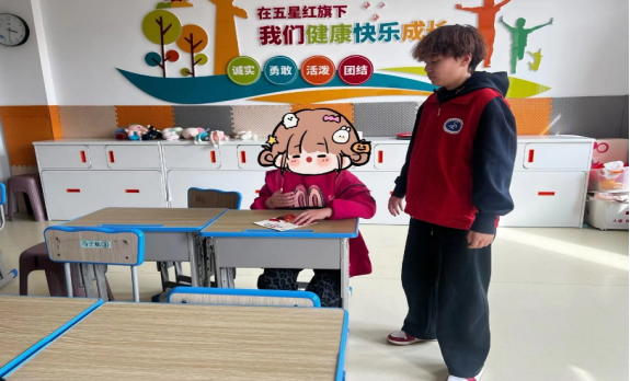 我刚走进教室,一个孩子就立刻跑过来,搬起一把小凳子放到他旁边,拍了拍凳子面,又指了指桌上的拼图,示意我坐下和他一起拼。我刚准备坐下,另一个孩子也拉住了我的衣袖,把我往他那边拽,同时把自己的凳子往旁边挪了挪,空出一个位置来。两个小家伙你争我抢,谁也不肯让步,最后还是老师过来协调,让我轮流陪他们各拼了一会儿。那一刻我忽然觉得,他们想要的从来不是被帮助,而是被看见、被陪伴。